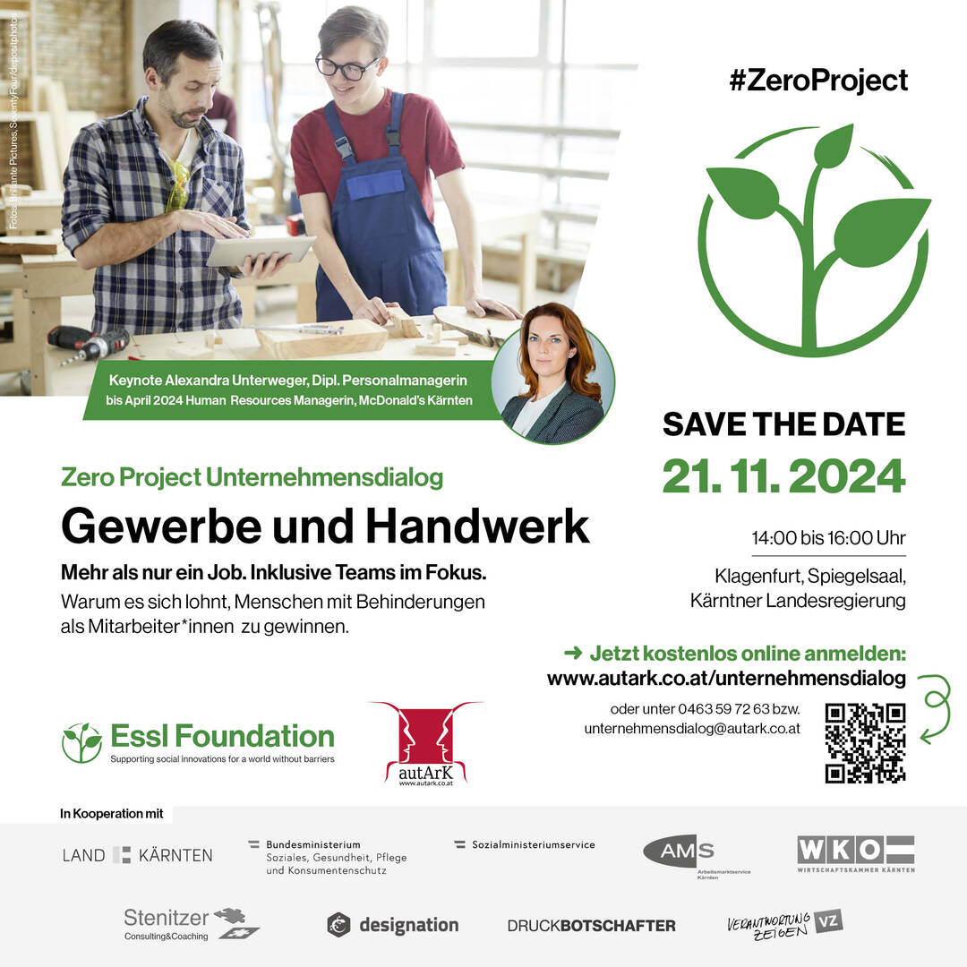 Eine Initiative der Essl Foundation (https://austria.zeroproject.org/) und der autArK Sozialen Dienstleistungs-GmbH (www.autark.co.at und www.facebook.com/autArK.Vielfalt, www.youtube.com/@adminautark) in Kooperation mit LH Dr. Peter Kaiser, LR.in Dr.in Beate Prettner (LRin für Gesundheit und Chancengleichheit), LR Mag. Sebastian Schuschnig (LR für Wirtschaft, Energie, Logistik, Gewerberecht, Tourismus, öffentlicher Verkehr und Mobilität), Sozialministeriumservice – Landesstelle Kärnten, AMS Kärnten, WK Kärnten und weiteren Partner*innen.